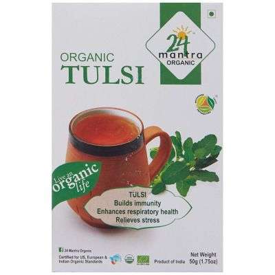 24 Mantra Organic Tulsi Tea - Enhances respiratory health and relieve stress relief.